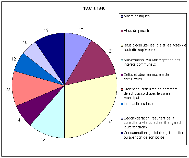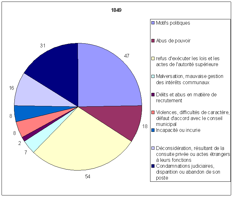 Aussi souvent que reviennent tout au long du XIXe siècle les remplacements autoritaires de maires dus aux circonstances politiques, ils ne doivent pas nous dissimuler le fait que les motifs purement administratifs de révocation ont été plus que fréquents et nombreux.